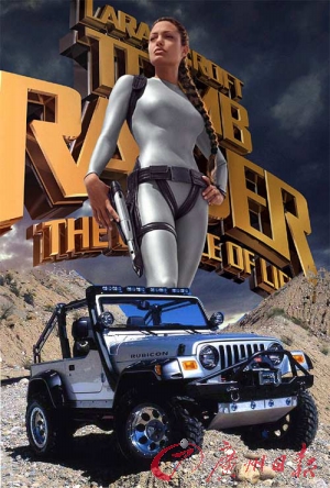 在《古墓麗影》里女主角勞拉的駕馭下,裝備精良的路虎穿山越嶺,造型酷到極點(diǎn)。也許是由于路虎在第一部電影里太過(guò)成功的緣故,汽車(chē)公司紛紛要求贊助勞拉。在《古墓麗影2》上映的時(shí)候,勞拉的強(qiáng)悍戰(zhàn)車(chē)換成了戴克萊斯勒公司的吉普牧馬人RUBICON,它在電影里的造型更加夸張。就連牧馬人出場(chǎng)的一幕也顯得很酷,勞拉直接從空中跳傘降落到牧馬人車(chē)中,并開(kāi)著它穿越各種環(huán)境極為惡劣的地帶尋找目標(biāo),令大批吉普迷為之癡狂。