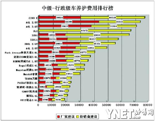 軸距在2700mm至2850mm的為中級車,超過2850mm的為行政級車。排行榜中的二十款中級、行政車養(yǎng)護費用顯示:日系品牌車型的保養(yǎng)價格較低。豪華品牌的車主不僅有權利享受到各種專屬服務。它們的愛車也得到更好的維護——喝的是純合成機油,用的是白金的火花塞……