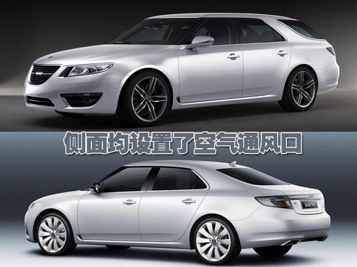 從圖片來看,薩博旅行版車型保持了與轎車車型一樣的前臉造型,在前輪拱罩的后面均設(shè)置了空氣通風口。不過有所不同的是薩博9-5旅行版車型采用了五輪輻設(shè)計的輪轂,轎車上傾斜的車尾造型已經(jīng)被典型的旅行版車型車尾造型所取代。