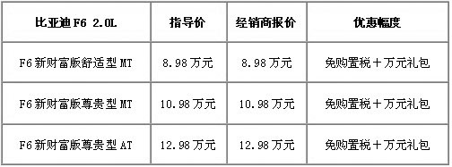 匯強(qiáng)購比亞迪F6全系免購置稅送萬元好禮