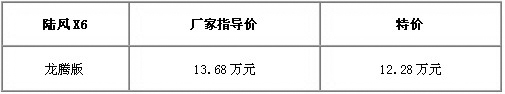 陸風X6龍騰版特價僅12.28萬元 健中岡巨獻