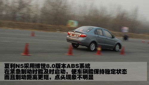 最后進行的是緊急制動項目,主要考核車輛在緊急制動時表現(xiàn)出的穩(wěn)定性,以及車輛剎車的有效距離。由于緊急制動時,三款測試車輛的時速各不相同,所以結(jié)果也會有所差別。夏利N5測試時的時速比較高,達(dá)到了近90km/h的速度,但這款車的制動距離仍然保持在可控范圍之內(nèi),而且點頭現(xiàn)象也并不明顯。另外,夏利N5配備的博世8.0版本ABS系統(tǒng),在緊急制動時能及時啟動,使車身保持在穩(wěn)定狀態(tài)。