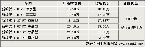據(jù)4S店銷售人員介紹:目前新領(lǐng)馭全系可優(yōu)惠5000元,較之前優(yōu)惠有所增加,除此之外還可贈送2000元裝飾,包括地膠、座套等車內(nèi)基本必備飾品,總優(yōu)惠達(dá)到7000元,此時購車非常合適。目前車源方面,每個4S店現(xiàn)車情況有所不同,但基本上現(xiàn)車都很齊全,顏色黑色為主。如需預(yù)定,需等待3-4周時間。