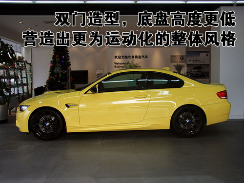 M3的底盤(pán)設(shè)計(jì)理念和超級(jí)跑車(chē)還是有所不同,它的車(chē)底離地間隙雖然比普通寶馬轎車(chē)低了一些,但是底盤(pán)設(shè)計(jì)型式是標(biāo)準(zhǔn)的寶馬模式;前短前懸、前置發(fā)動(dòng)機(jī)后輪驅(qū)動(dòng)、長(zhǎng)軸距和50:50的前后軸質(zhì)量分配。駕駛座椅非常具有運(yùn)動(dòng)風(fēng)格,但是真皮的包裹還是表明它并不是為比賽而準(zhǔn)備的。這種差別在追求賽車(chē)感覺(jué)的同時(shí),也考慮行駛的舒適性,這正是寶馬的運(yùn)動(dòng)理念,和GT公路跑車(chē)的設(shè)計(jì)理念有些接近。