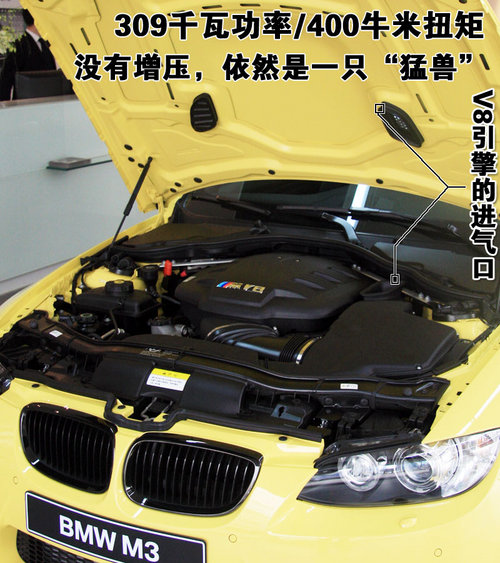 雖然外形和普通BMW3系很相似,但是他們和普通BMW3系相同的也只有這些。由于代表寶馬尖端性能的跑車(chē),M3的車(chē)身采用了大量輕量化的材料,懸掛和車(chē)身部件大量采用了鋁合金輕量化材料,使車(chē)身整備質(zhì)量大幅度降低,因?yàn)檎l(shuí)都知道“輕巧”和“笨重”之間的含義,輕巧而剛強(qiáng)的車(chē)身是操控敏捷性的前提。不過(guò),由于外形更大,這款M3比它的前輩重160千克。