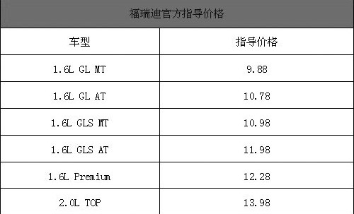 6月18日晚,東風(fēng)悅達(dá)起亞全新一代緊湊車型福瑞迪正式上市,共有1.6L和2.0L兩種排量共6款車型可供消費(fèi)者選擇,價(jià)格從9.88萬元到13.98萬元,比競(jìng)爭(zhēng)對(duì)手悅動(dòng)定價(jià)稍低一些。以上是福瑞迪各款車型詳細(xì)價(jià)格表。