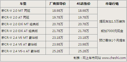 筆者從經(jīng)銷(xiāo)店了解,目前CR-V仍需要加價(jià)購(gòu)車(chē),提現(xiàn)車(chē)需要加7000元現(xiàn)金或者加裝1.5萬(wàn)元的裝飾,裝飾項(xiàng)目包括了腳墊、尾翼、行李架、踏板等。消費(fèi)者可根據(jù)需求選購(gòu),目前2.0和2.4自動(dòng)檔有黑色、銀色現(xiàn)車(chē)供應(yīng),但顏色不齊全,訂車(chē)的話訂金為1-2萬(wàn)元,最快1個(gè)月可以提到車(chē)。
