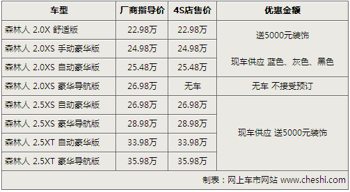 相比11月初的加價銷售,目前購買斯巴魯森林人店內(nèi)可贈送價值5000元的裝飾,其中包括了倒車?yán)走_,尾喉,腳墊,2年道路救援卡等等,而在價格方面沒有優(yōu)惠幅度,F(xiàn)車方面,2.0豪華版,2.5豪華版有藍色、灰色、黑色、銀色等現(xiàn)車供應(yīng),可供挑選的空間還是很大的。