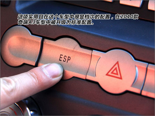 在內(nèi)飾方面,2010款奇瑞A3也是完全沿用了前款車(chē)型的設(shè)計(jì),只是在一些安全性配置方面有所加強(qiáng)。首先,她們引以為傲的ESP功能更加親民的改成了全系標(biāo)配。其次在一些高配車(chē)型上,由雙氣囊改成了六氣囊,除原有的正副駕駛位的氣囊外,又在兩側(cè)的A、B柱上加裝了安全氣簾,是車(chē)輛的安全性得到很到的加強(qiáng)。