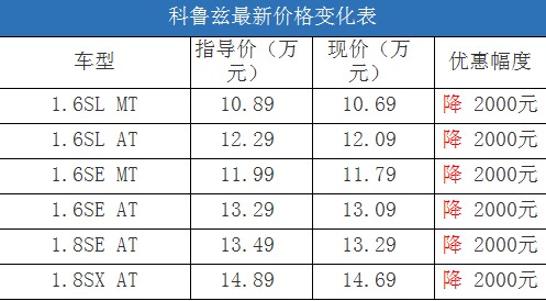 近日,編輯從北京地區(qū)綜合經(jīng)銷商處了解到,科魯茲有少量紅色、銀色和白色現(xiàn)車,購(gòu)車全系可以優(yōu)惠2000元現(xiàn)金,這對(duì)于該車一直價(jià)格穩(wěn)定車源緊張的情況而言非常令人驚喜。據(jù)經(jīng)銷商透露,消費(fèi)者要想以這個(gè)價(jià)格提車,需要在店內(nèi)做購(gòu)車一條龍服務(wù),其中車輛四項(xiàng)基本保險(xiǎn)可以打8.8折(約合4000-5000元左右)。以下是科魯茲最新價(jià)格變化表: