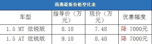 近日,編輯從北京地區(qū)綜合經(jīng)銷商處了解到,近期雨燕的現(xiàn)車比較充足,顏色也比較齊全,基本可以滿足消費者的需要;目前購車全系有7000元的現(xiàn)金優(yōu)惠。據(jù)經(jīng)銷商透露,消費者要想以這個價格提車,需要在店內(nèi)做一條龍服務(wù),其中車輛四項基本保險可以打9折(約合3400-3600元左右)。以下是雨燕最新價格變化表: