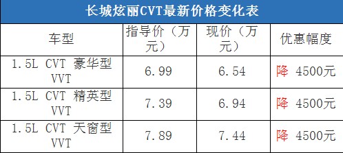 近日,編輯從北京地區(qū)綜合經(jīng)銷商處了解到,購買長城炫麗CVT車型有4500元的現(xiàn)金優(yōu)惠,店內(nèi)有黑色現(xiàn)車在售,部分車型預(yù)定等待10天左右就可以提車。據(jù)經(jīng)銷商透露,消費(fèi)者要想以這個(gè)價(jià)格提車,需要在店內(nèi)做購車一條龍服務(wù),其中車輛四項(xiàng)基本保險(xiǎn)可以打8折(約合2800-2900元左右)。以下是長城炫麗CVT最新價(jià)格變化表: