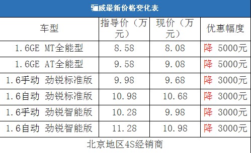 近日,編輯從北京地區(qū)東風(fēng)日產(chǎn)4S經(jīng)銷商處了解到,驪威的現(xiàn)車比較充足,每款車型都有少量現(xiàn)車在售。目前購(gòu)車最高有5000元的現(xiàn)金優(yōu)惠,與去年的4S優(yōu)惠幅度相同,但現(xiàn)車緊張的狀況已經(jīng)解決。以下是驪威最新價(jià)格變化表: