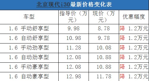 近日,編輯從北京地區(qū)北京現(xiàn)代4S經(jīng)銷商處了解到,現(xiàn)代i30有較為充足的現(xiàn)車銷售(紅色、銀色和灰色),可以滿足消費(fèi)者在春節(jié)前夕的購車需求。目前在4S店中購車可獲贈(zèng)價(jià)值1萬元的裝潢禮包,經(jīng)銷商表示這個(gè)優(yōu)惠可以折現(xiàn),但具體金額需要消費(fèi)者到店詳談才能確定。相比之下,現(xiàn)代i30在綜合經(jīng)銷商處的優(yōu)惠幅度更加可觀,1.6L車型可以優(yōu)惠現(xiàn)金1.2萬元。以下是現(xiàn)代i30最新價(jià)格變化表: