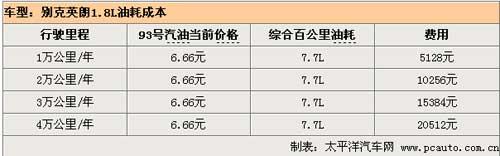 油耗方面,英朗1.8L排量車型在綜合路況行駛需要花費7.7L油耗,也就是說車主每行駛1萬公里在燃油方面需要花費5128元。