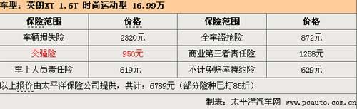 以指導(dǎo)價(jià)16.99萬(wàn)的英朗XT 1.6T 時(shí)尚運(yùn)動(dòng)型為例,保險(xiǎn)方面購(gòu)買了第三者50萬(wàn)元責(zé)任險(xiǎn),每年的保險(xiǎn)費(fèi)用為6789元。