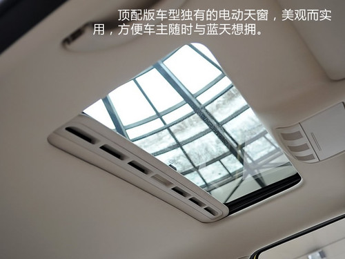 頂配車型還裝有電動天窗,只要您愿意,隨時(shí)可以打開天窗享受頭頂?shù)哪瞧{(lán)天。