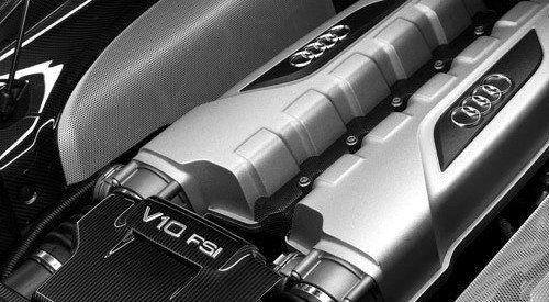 采用干式油底盒的5.2L FSI V10發(fā)動機(jī)采用了碳纖維頂罩,發(fā)動機(jī)艙同樣使用了玻璃外殼,這樣就可以大方的像外人炫耀。另外,V10發(fā)動機(jī)相比只比V8發(fā)動機(jī)重了31千克,爆發(fā)點(diǎn)也略微靠后,V8發(fā)動機(jī)在7800轉(zhuǎn)/分時(shí)獲得最大功率414馬力,而V10發(fā)動機(jī)在8000轉(zhuǎn)/分時(shí)能夠獲得518馬力。此外,V8版的R8在6000轉(zhuǎn)/分時(shí)獲得最大425Nm的扭矩,V10發(fā)動機(jī)能夠在6500轉(zhuǎn)/分時(shí)輸出最大530Nm的扭矩。