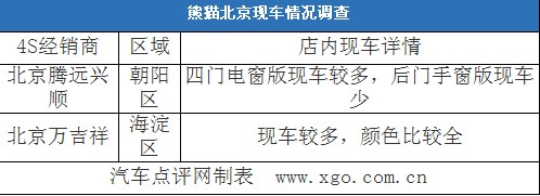 北京地區(qū)僅有兩家熊貓4S經(jīng)銷商,調(diào)查結(jié)果顯示,熊貓四門電窗版車型現(xiàn)車數(shù)量充裕,顏色較全,而后門手窗版車型現(xiàn)車較少,需預(yù)定。價(jià)格方面,兩家4S店的報(bào)價(jià)比較統(tǒng)一,均表示能現(xiàn)金優(yōu)惠4000元,購車后可贈(zèng)送一些裝飾品,詳情需要到店面談。
