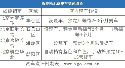 新奧拓僅有1.0L排量3款車型可選,其中賣的最好的應(yīng)該是自動擋車型。北京地區(qū)長安鈴木的4S經(jīng)銷商比較多,我們隨機選擇了4家經(jīng)銷商,其中僅有位于朝陽區(qū)的北京航空華北店有自動擋現(xiàn)車,顏色有藍色和白色。手動擋車型沒有現(xiàn)車,如果預(yù)定的話,10-15天可提車。剩下的三家4S店內(nèi)都沒有現(xiàn)車,預(yù)定的話,最快要等待2個月才能到店,最慢要等4個月才能到店。