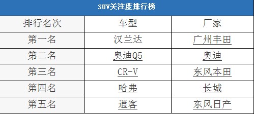 今天我們就以SUV為關(guān)注焦點,搜集了網(wǎng)友點擊最高的5款SUV。下面就一起來看一下。