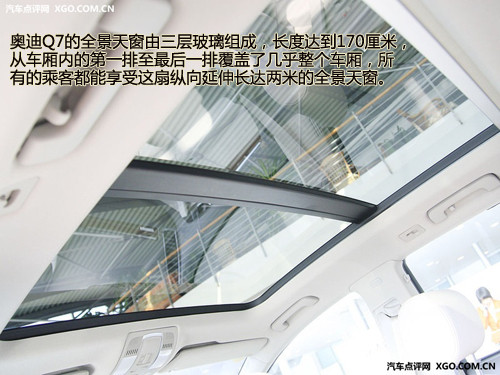 作為奧迪旗下的第一款SUV車(chē)型,奧迪理所當(dāng)然的為我們帶來(lái)了豪華的全景天窗配置。這個(gè)被稱(chēng)為“Open Sky”的全景天窗,由三層玻璃組成,長(zhǎng)度達(dá)到170厘米,從車(chē)廂內(nèi)的第一排至最后一排覆蓋了幾乎整個(gè)車(chē)廂,所有的乘客都能享受這扇縱向延伸長(zhǎng)達(dá)兩米的全景天窗。