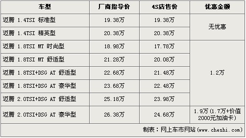 大眾邁騰 全系最高降1.9萬