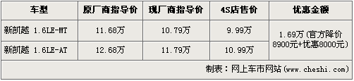 據(jù)北京別克經(jīng)銷店銷售人員介紹,目前別克凱越只有1.6L手動(dòng)舒適版以及1.6L自動(dòng)舒適版兩款車型在售,其他車型均已不再銷售。別克對(duì)這兩款在售車型進(jìn)行了統(tǒng)一官降8900元,并且在經(jīng)銷店購(gòu)車還可以得到8000元的現(xiàn)金優(yōu)惠,兩款車型的售價(jià)分別降到了9.99萬元和10.99萬元。銷售人員還介紹,店內(nèi)兩款車型現(xiàn)車充足,消費(fèi)者挑選的空間很大。
