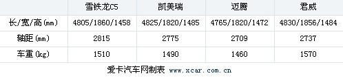 從車(chē)身尺寸來(lái)看,君威擁有最長(zhǎng)的車(chē)身,但是C5的軸距最長(zhǎng)。這樣就保證了C5擁有寬敞的車(chē)內(nèi)空間。我認(rèn)為C5的內(nèi)部空間在前后間距和縱向間距都做的很寬敞,但頭部空間相對(duì)比較局促,尤其是后排。