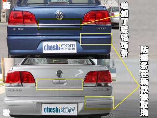 尾部整體造型也沒有什么變化,細節(jié)之處有一些不同。大燈造型變得更加尖銳,尾燈燈光造型也由圓形變?yōu)椤癓”型;大眾LOGO下方取消了后備箱拉手,并增加了一條鍍鉻飾條;還有保險杠的防撞條也取消了,和前保險杠保持了一直風(fēng)格。