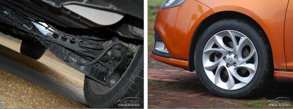 馬自達(dá)3與?怂沟臏Y源,相信大家都有所了解。故此,兩者在底盤(pán)上面基本相同,前麥弗遜,后多連桿,同樣配有前后副車架。輪胎規(guī)格是205/55R16,配16寸鋁合金輪圈。
