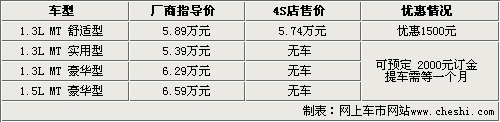 據(jù)海馬汽車4S店銷售人員介紹,在丘比特4款車型當(dāng)中,售價(jià)5.89萬元的1.3L手動(dòng)舒適型性價(jià)比較高,也已成為丘比特銷售的主力車型,可以享受1500元的現(xiàn)金優(yōu)惠。其他兩款1.3L車型和1.5L車型均無現(xiàn)車,如想預(yù)訂需要交2000元訂金,到車時(shí)間為1個(gè)月左右。