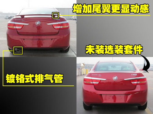 加裝配置的車型看起來時(shí)尚許多,譬如增加的鍍鉻式排氣管使整車更具運(yùn)動(dòng)感,與英朗GT極具運(yùn)動(dòng)感的外觀配合起來非常完美。當(dāng)然,尾翼是少不了的。尾翼的增加不但看起來好看,尤其在高速駕駛中起到穩(wěn)定車身的作用,是一個(gè)既美觀又實(shí)用的配置。