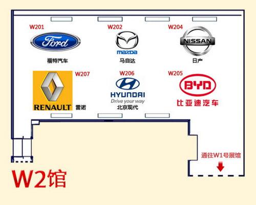 在本屆北京車展,W2館有日產(chǎn)、現(xiàn)代、馬自達(dá)、比亞迪汽車、福特汽車、雷諾等共6個(gè)品牌參展,主要亮點(diǎn)車型:日產(chǎn)LEAF、日產(chǎn)Juke、北京現(xiàn)代RC、北京現(xiàn)代i50、馬自達(dá)馬自達(dá)8、比亞迪S6/L3、福特銳界、福特新福克斯以及雷諾新梅甘娜CC等。