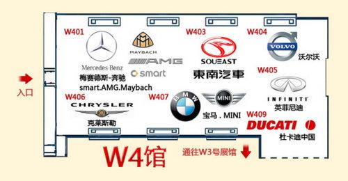 W4館將有沃爾沃、寶馬、MINI、克萊斯勒、英菲尼迪、東南、杜卡迪中國、梅賽德斯-奔馳、smart、AMG、邁巴赫等11個(gè)品牌參展,主要亮點(diǎn)車型包括沃爾沃新S60、華晨寶馬5系加長版、寶馬VED概念車、MINI Countryman、克萊斯勒新大切諾基、英菲尼迪QX56、奔馳全新E級敞篷以及奔馳2011款R級等。