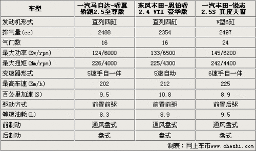 通過(guò)以上橫向?qū)Ρ龋梢钥闯鲱R磙I跑、思鉑睿和銳志的排量都在2.4這個(gè)區(qū)間,并且都具備了日系發(fā)動(dòng)機(jī)傳統(tǒng)的特點(diǎn):性能良好、油耗經(jīng)濟(jì),但是發(fā)動(dòng)機(jī)形式卻完全不同。從官方公布的等速油耗來(lái)看,睿翼轎跑的油耗要低于本田思鉑睿和豐田銳志,這與一汽馬自達(dá)強(qiáng)調(diào)的輕量化設(shè)計(jì)車身是分不開(kāi)的。銳志采用了V型6缸發(fā)動(dòng)機(jī),該發(fā)動(dòng)機(jī)運(yùn)用了雙VVT-I技術(shù),因此在動(dòng)力方面明顯要優(yōu)越于睿翼轎跑和思鉑睿,同時(shí)再加上銳志為后驅(qū)車型,再加上百公里加速僅為8.9秒,就從這兩點(diǎn)就也可以看出銳志是一款偏運(yùn)動(dòng)的車型。在變速器方面,銳志略勝一籌,配備了手自一體式6速自動(dòng)變速箱,思鉑睿則是5速自動(dòng)變速器,是三款車型中配置較低的。三款車型的制動(dòng)系統(tǒng)都是前通風(fēng)盤后實(shí)心盤。