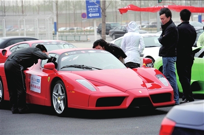 昨天是北京國(guó)際車展專業(yè)觀眾日的第一天。展館外的花博會(huì)停車場(chǎng)上,停了約50輛超級(jí)跑車,寶馬、法拉利、保時(shí)捷、奧迪、奔馳等豪華車品牌悉數(shù)到場(chǎng),無(wú)意中成了一個(gè)小型“豪華車展”,零距離接觸跑車的快感,吸引了不少路人和看展人的視線。