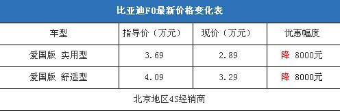 近日,編輯從北京地區(qū)比亞迪4S經(jīng)銷商處了解到,近期比 亞迪F0的現(xiàn)車比較充足,基本上可以滿足消費(fèi)者的購車需求。目前購車最高可以優(yōu)惠8000元現(xiàn)金,銷售人員透露優(yōu)惠幅度到店還可以再議,在店內(nèi)上商業(yè)保險(xiǎn)的話可以打9折。