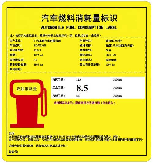 上兩圖為本田雅閣的2.0L和2.4L兩款版本的車型工況油耗標(biāo)識(shí),而它8.5L/100km和8.8L/100km的油耗平均只看起來很好看,但是同時(shí)不得不承認(rèn)它的“體重”要比一般的歐美系轎車輕了一個(gè)成年人的重量。