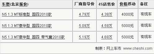 夏利車型在國內的銷量一直都處于很平穩(wěn)的高度,超高的性價比成就了夏利車型出色的認可度。天津一汽夏利與去年年底推出了全新夏利N5車型,在夏利其他車型光環(huán)的照耀下,N5同樣交出了一份很出色的答卷。近期,網上車市走訪了天津一汽夏利北京地區(qū)4S店,了解到夏利N5最新的市場信息,具體信息請參考下表: