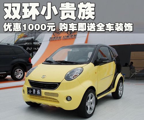 雙環(huán)小貴族車型引起人們關(guān)注的主要原因,就是因?yàn)橥庑卧O(shè)計(jì)與Smart極為相近,小貴族憑借著低價(jià)和小車身也在市場(chǎng)占有一定的地位。通過(guò)對(duì)北京地區(qū)雙環(huán)小貴族車型的調(diào)查,我們發(fā)現(xiàn)小貴族最近不但有降價(jià)活動(dòng),而且還有好禮相送,具體信息請(qǐng)參考下表: