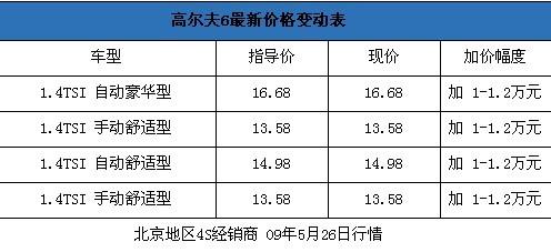 高爾夫6上市后銷售火爆,在編輯暗訪一汽-大眾4S經(jīng)銷商時,多數(shù)銷售人員不愿透露該車的加價幅度。近日,編輯從一位不愿透露姓名的大眾銷售人員處得知,目前高爾夫6的1.4TSI車型仍然在加價銷售,基本上加價的幅度為1萬-1.2萬元,白色車型加價幅度更大;如果消費(fèi)者選擇不加價,那么提車的時間大概在9月份以后。以下是高爾夫6最新價格變化表: