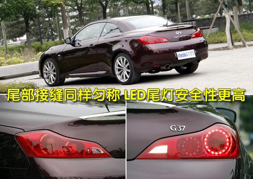 英菲尼迪G37敞篷版較四門版車型更為動感時尚,整體設(shè)計偏向年輕化群體,外觀整體線條流暢,圓潤的設(shè)計絲毫不顯突兀。外觀做工沿襲了英菲尼迪造車一貫的細(xì)膩風(fēng)格,模具制造與噴漆工藝均屬上乘,前大燈與引擎蓋接縫十分勻稱,保險杠、發(fā)動機(jī)蓋及水箱框架等周圍的接縫同樣非常勻稱。