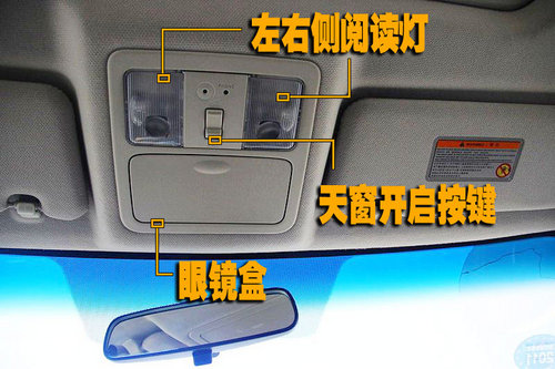 東風(fēng)日產(chǎn)新軒逸兩側(cè)遮陽板之間為駕駛席和副駕駛席分別提供了獨(dú)立式的閱讀燈,方便車主與乘員在夜間查看地圖等。閱讀燈前側(cè)配有眼鏡盒。