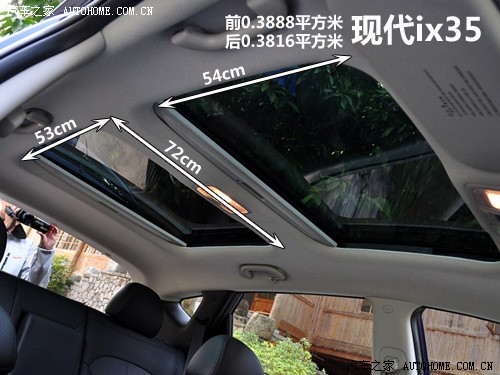 在北京現(xiàn)代新推出的SUV車型ix35上面,頂配車型也裝備了雙天窗,并且它的面積是今天幾個車型當中的比較大的。不僅總面積大,可以打開的面積也很大。近期在現(xiàn)代和起亞的車型上我們頻繁看到雙天窗的身影,比如進口起亞的索蘭托也配備雙天窗。