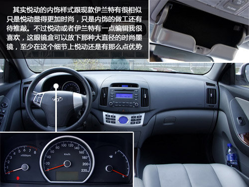 悅動的內(nèi)飾設(shè)計主要以簡潔為主,并輔助以時尚實用,雖然桃木的配飾依然感覺塑料感十足,但是顏色的搭配讓它桃木俗套的感覺減弱不少,值得一提的是它的眼鏡盒設(shè)計,頭頂前方的位置會更加方便行駛中放置眼鏡,并且眼鏡盒空間比較大,一般的大個墨鏡放進去不會有任何阻礙。