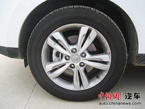 除最低配的兩款2.0新銳版車型采用的是215/70R16的輪胎規(guī)格外,其他幾款車型輪胎尺寸皆為225/60R17,而且很厚道地配備了全尺寸備胎。雙五輻輪轂造型不錯(cuò),只是安在和這部個(gè)頭不算小的SUV身上還是顯得不夠提氣。如果輪胎能再大上一號(hào),或是將懸掛調(diào)高一個(gè)尺寸,這輛車從側(cè)面看上去會(huì)更有視覺沖擊力。