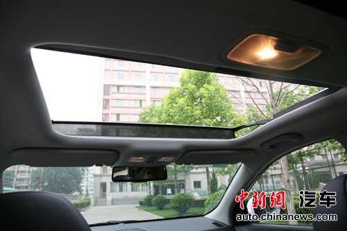 圖注:雙天窗可能是這ix35上最奢華的配置。若不是有那道支撐車體強(qiáng)度的橫梁擋在中間,就是真正的全景天窗了。不過即使這樣,前半部54cm×72cm的開啟面積已然足夠大了。