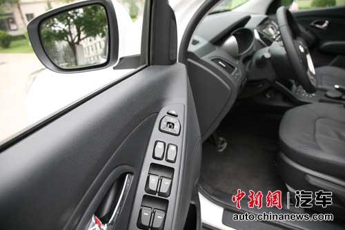 圖注:后視鏡帶一鍵折疊功能,在窄路上停車還是很有實(shí)用性的。另外,ix35只有司機(jī)側(cè)的車窗支持一鍵升降。