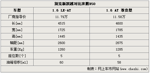 從車身尺寸來看,新凱越的三圍是:4515mm*1725mm*1445mm,B50的長寬高是:4600mm*1785mm*1435mm。在長、寬兩個項目上,身材更加魁梧的B50優(yōu)勢相對明顯,為車內腿部空間和橫向舒展性的優(yōu)良感受奠定基礎;車身高度上新凱越略占優(yōu)勢,乘客頭部的空間相對由優(yōu)勢。